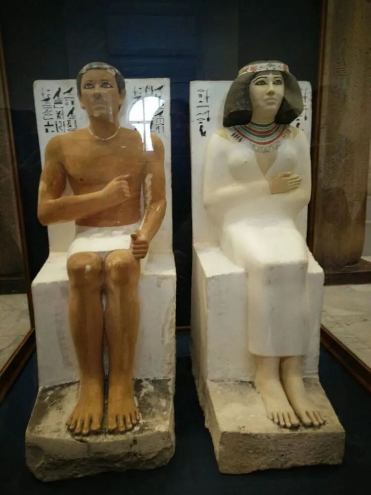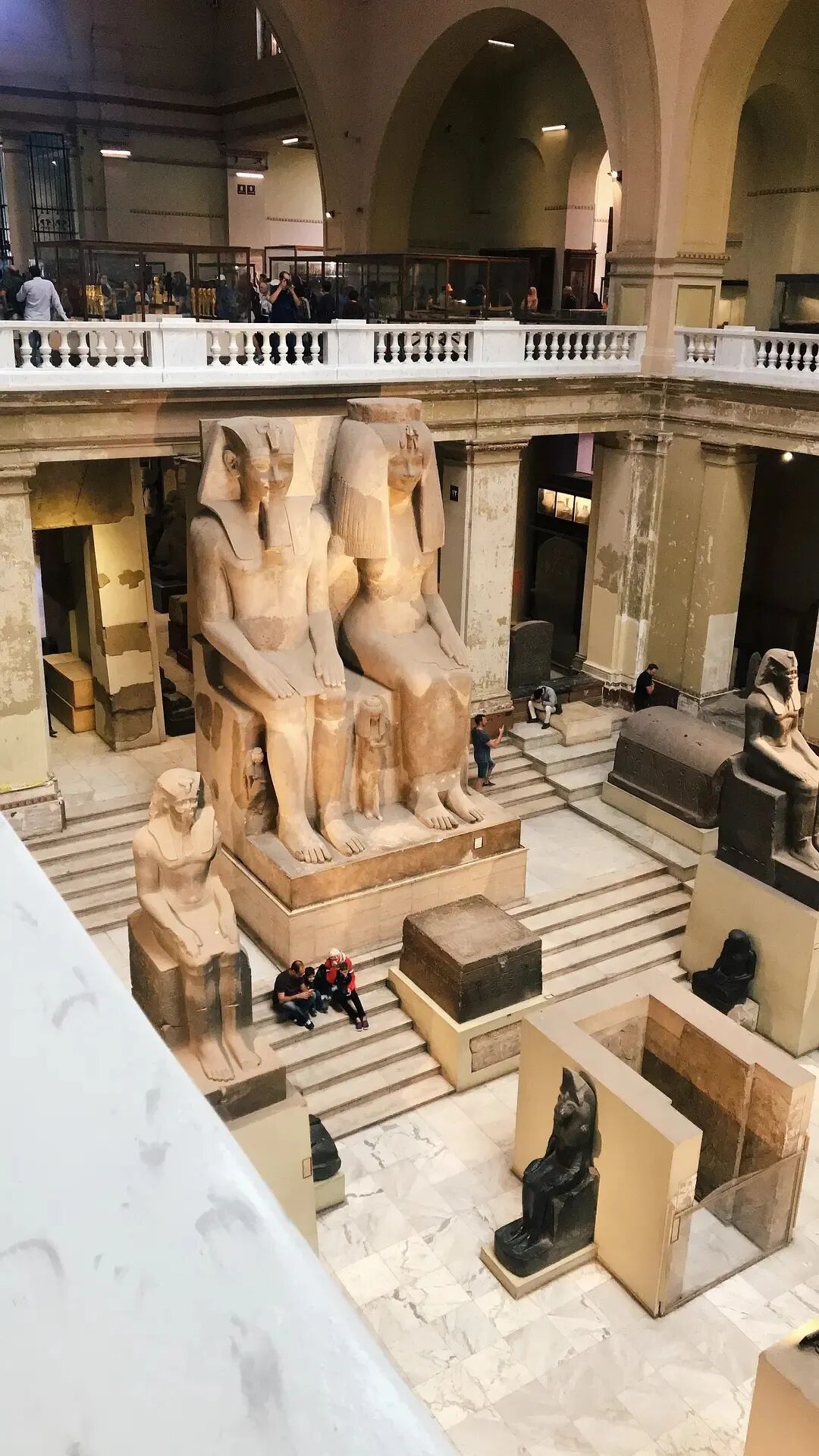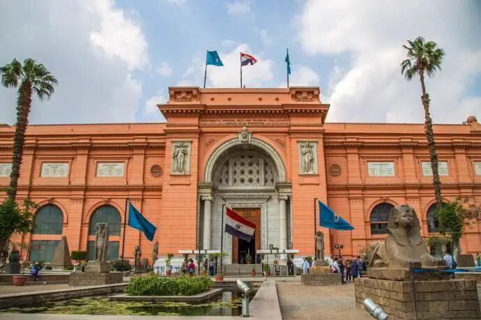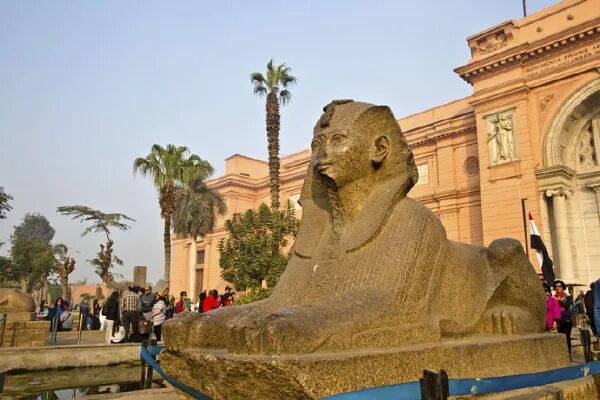 埃及国家博物馆位于尼罗河畔的解放广场,是世界上最著名、规模最大的收藏古埃及文物的博物馆。它建于1858年,是一幢砖红色的长方形建筑,共两层,结构非常简单,里面的藏品却异常丰富。 埃及国家博物馆馆藏超过30万件。收藏品从史前时代到远古、中古、帝国时代,以至希腊和罗马的美术品皆有,其中珍藏的自古埃及法老时代到公元五至六世纪罗马统治时代的历史文物就有10万多件。陈列展出6.3 万件,约占全部文物的五分之一。因这座博物馆以广为收藏法老时期的文物为主,埃及人又习惯地称之为“法老博物馆”。 第一层按照文物的年代展出,以顺时针方向展示埃及各个王朝的文物。有古岩画、壁画、石片、法老船,还有很多大型石像、石棺以及木雕。著名的石像包括法老哈夫拉坐像、古埃及书记像,以及用5米高的整块石灰岩雕成的国王拉美西斯二世同王后坐像。 第二层都是主题展厅,陈列着古埃及的生活用品、首饰和艺术品等,其中又以法老木乃伊展室和图坦卡蒙墓出土文物展厅最著名。法老木乃伊展室保存着十几具古埃及法老和王后的木乃伊,最著名的是拉美西斯二世的木乃伊。 ←这个精美的刻像展示了古埃及人的日常生活 ↓厚实的棺木上面雕刻着古老的象形文字和图案 图坦卡蒙是古埃及新王国时期第十八王朝的一位法老(公元前1584年至公元前1341年),他的陵墓是英国考古学家霍德华·卡特于1922年在尼罗河西岸沙漠的帝王谷中发现的。墓中完好地保存了3000多年前大量珍贵文物,出土的文物近2000件,包括家具、器皿、雕塑、武器、战车、纺织品、金银珠宝等。其中黄金面罩、金棺、金御座、金冠等物品精美绝伦,都是埃及国家博物馆的镇馆之宝。 图坦卡蒙御座,座椅的正面两侧各有一个金制的狮子头,扶手为蛇首鹰身的雕像,分别代表上下埃及的王权。御座的靠背是一幅王室家庭生活的画面:在阳光照耀下,王后含情脉脉地抚摸御座上的国王,二人目光相对,和美温馨。椅背是一块黄金板上镶石加彩,与中国的景泰蓝异曲同工。 图坦卡蒙黄金面罩是依照国王生前面容打造的,由金箔制成,镶有宝石和彩色玻璃,重达11千克,是世界上最精美的艺术珍品之一。图坦卡蒙金棺闪闪发光,用450磅纯金制成,是人类历史上最精致的金制品之一。 这是埃及第十八王朝,图坦卡蒙王朝时期(前1333-前1323)的香水瓶。香水瓶由雪花石膏制成,高70.5厘米,宽36厘米,深18.5厘米,发掘于帝王谷图坦卡蒙墓。这个香水瓶是在保护法老棺椁的圣器中发现的。这个器皿被雕刻成莲花和纸莎草图案,两种植物分别握在两名男性手中,他们是尼罗河神的化身。两人戴着被梳成莲花和纸莎草的样子的假发,身形丰满,胸部下垂,肚子突出,这象征着尼罗河的灌溉所带来的富庶和生命。在莲花和纸莎草上方耸立的两条眼镜蛇分别戴有下埃及和上埃及的王冠,这也是埃及南北方统一和平衡的象征。瓶的底座上刻有两只鹰的图案,它们正在保护图坦卡蒙的王名圈。瓶上绘有法老的名字,同时还有他年轻的妻子安克赫森纳蒙的名字。 尼罗河神形象的阿莫南哈特三世双身像,公元前1843—1797年。这尊阿莫南哈特三世雕像,在二十一王朝的时候,曾被苏森纳斯一世篡用。他把阿莫南哈特三世雕像搬到了坦尼斯。阿莫南哈特三世被雕塑成一人双身。他头戴结成一辫辫的假发。胡须作了超常的夸张。整个人物依托尼罗河神哈比的形象,因为哈比河神给国家带来福祉,把土地变得肥沃,给人民送上了生命的厚礼:鱼、虾、禽鸟和繁茂的水生植物。雕像前后身躯的肌肉凸显而准确。雕刻家打破了埃及的传统的左脚前迈的惯例,只有一个人物迈出左腿,而另一个人迈出右腿,这样保持了身体的平衡。 胡夫的儿子哈夫拉,修建了吉萨第二大金字塔。这个黑曜石雕像出自金字塔神庙。正面看与其他雕像没什么不同,实际脑后雕有神鹰。意味着有神鹰保护,同时也对雕像的头起到支撑作用。 王子拉霍特普和他的妻子诺夫勒特,分别在两个石块上雕成坐像。两个坐像均为彩绘,虽然已经四千六百年,但保存得相当完好。王子拉霍特普光着上身,戴白色项圈,着白色腰裙,上唇有与现代阿拉伯男子类似的短胡须,皮肤黝黑。诺夫勒特神情端庄,黑发及肩,额头束有白底彩花发带,颈上绘有黑、青、红三色的项链,丰满的身躯在白色衣裙中显得婀娜动人。他们的眼睛是用黑宝石制作的,显得炯炯有神。在头部两侧有黑色的古埃及象形文字。白的底色上有人、鸟、植物、眼睛、庄稼等等,显得清晰、简洁、美丽,引起人们的好奇心。这一组坐像男子肌肤颜色与女子肤色有着明显区分,在艺术史上具有重要的地位。 “村长”卡•阿帕,大祭司。公元前2513---2506年。这是最古老的近似真人大小的埃及无花果木雕像。他头发梳理整齐,圆圆的脸庞,饱满的下巴。他的眼眸子是水晶石的,眼白是另一种水晶石,眼眶则是铜质的。腹部、臀部有点大,后背还刻出凸出的肌肉。他身着一条短裙,左腿向前迈出。左手持一根手杖。原塑像很多地方残缺:左手的手杖、左腿和左脚,还有右腿,都是后来补修的。埃及人第一次看到这雕像时,使他们联想到埃及农村的村长。他们大多是大肚子,圆脸庞的形象,所以他们就称此雕像为sheikh al--balad意思是“村长”。 四千年前古王国时期(前2450)的雕塑,眼睛眉毛均经过特殊处理,即采用黑、白色大理石等材料嵌入,更显